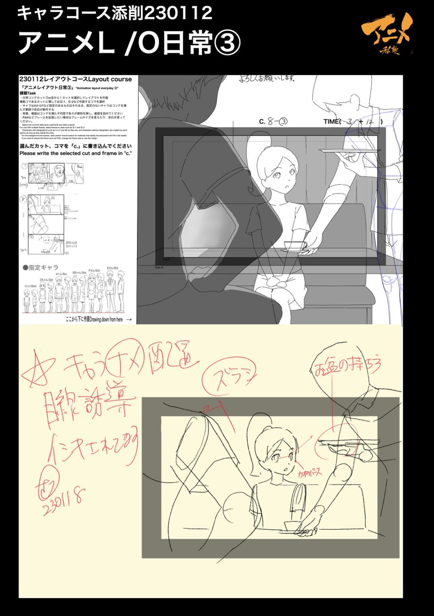 アニメ私塾レイアウトコース添削230112 「アニメL/O日常③」 https://t.co/OEDSBX952Q