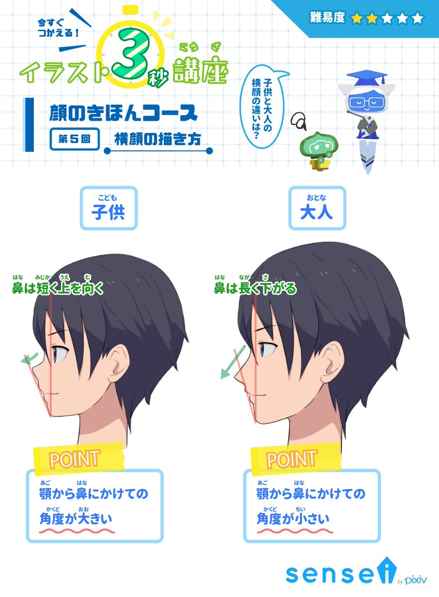 子供と大人の横顔の違いを比べてみましょう! #イラスト3秒講座 詳しくはこちら→ https://t.co/OpP6O0DLfF https://t.co/9BUe03Ohd3