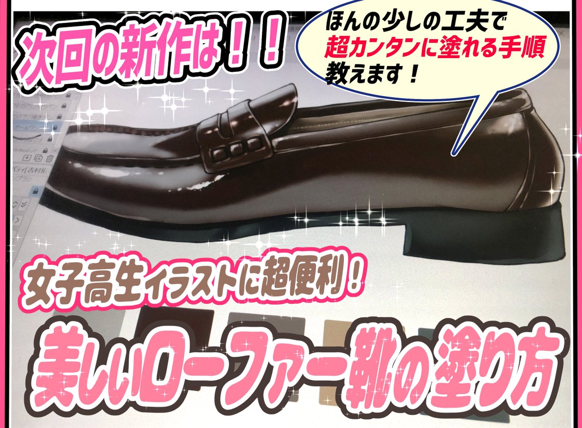 【⭐️新作講座あした公開⭐️】講座2023.03.02 吉村拓也【イラスト講座】【⭐️新作講座あした公開⭐️】《明日3/3の☀️12時に公開!》 【女子高生のローファー靴の塗り方👞】 の最終チェック中‼️🔥3月の第1作目の新作講座です🔥「ローファーが難しくて描けない…💦」 って人にこそ価値がある講座です✨FANBOX登録で過去6年間の全講座も観れます👉https://t.co/wlaYZu1M3D https://t.co/6kqy68kUCw 引用元