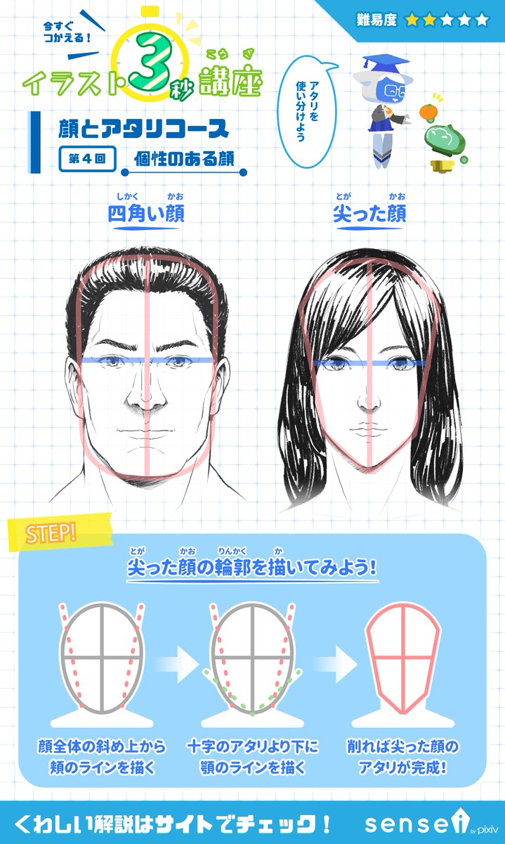 個性のある顔は、適切なアタリを使って描きましょう。 #イラスト3秒講座 詳しくはこちら→ https://t.co/Qxp1HKckyP https://t.co/gHgHYhAMdd