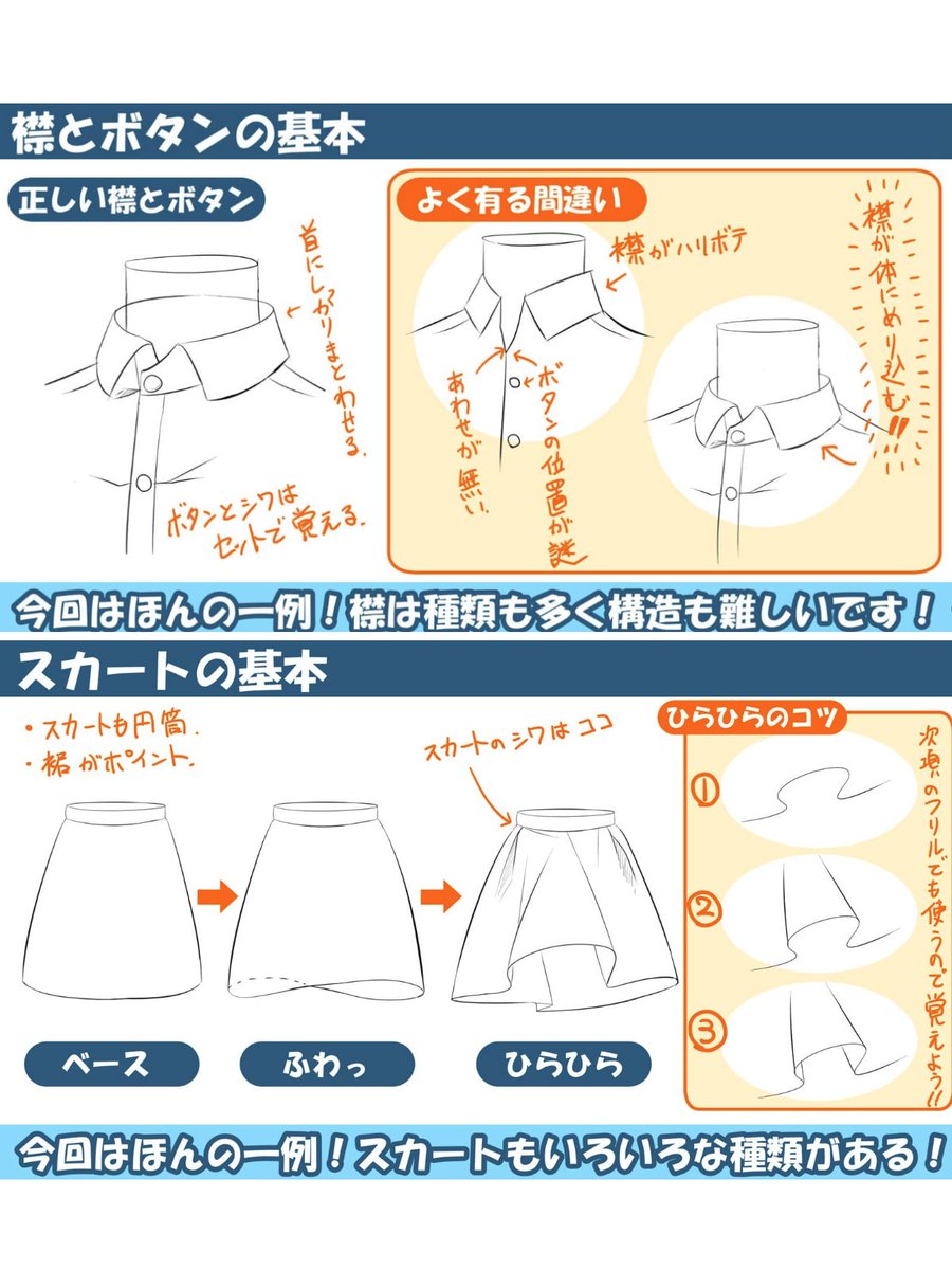 服の襟とスカートの描き方をまとめました👚…服の描き方2023.03.14 お絵かき講座パルミー服の襟とスカートの描き方をまとめました👚👗✨ https://t.co/acz1CmwHeZ https://t.co/sWrQoHiT2H 引用元