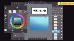 着彩水中での色の表し方例🏖️ お絵かき講座パルミー 水中での色の表し方例🏖️ 水面に近い部分は光を受けて明るく、底に向かうほど暗くなります☝︎ 川などは緑に近い色にするなどシチュエーションで変えると良いですね👍 引用元2023.03.27着彩