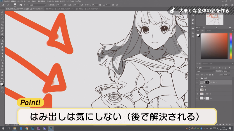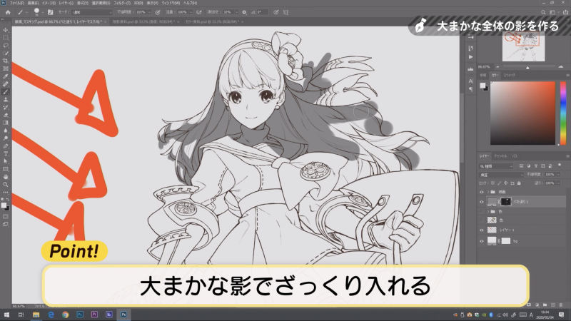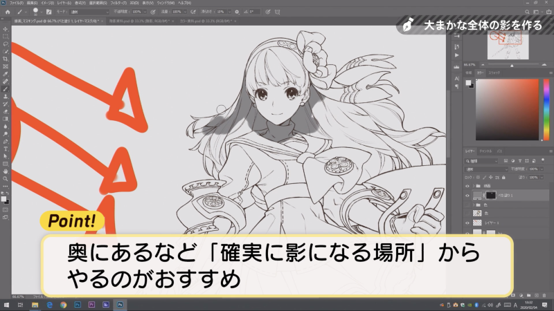 下塗りレイヤーを非表示にして、全体の大まかな影を塗ります✍️