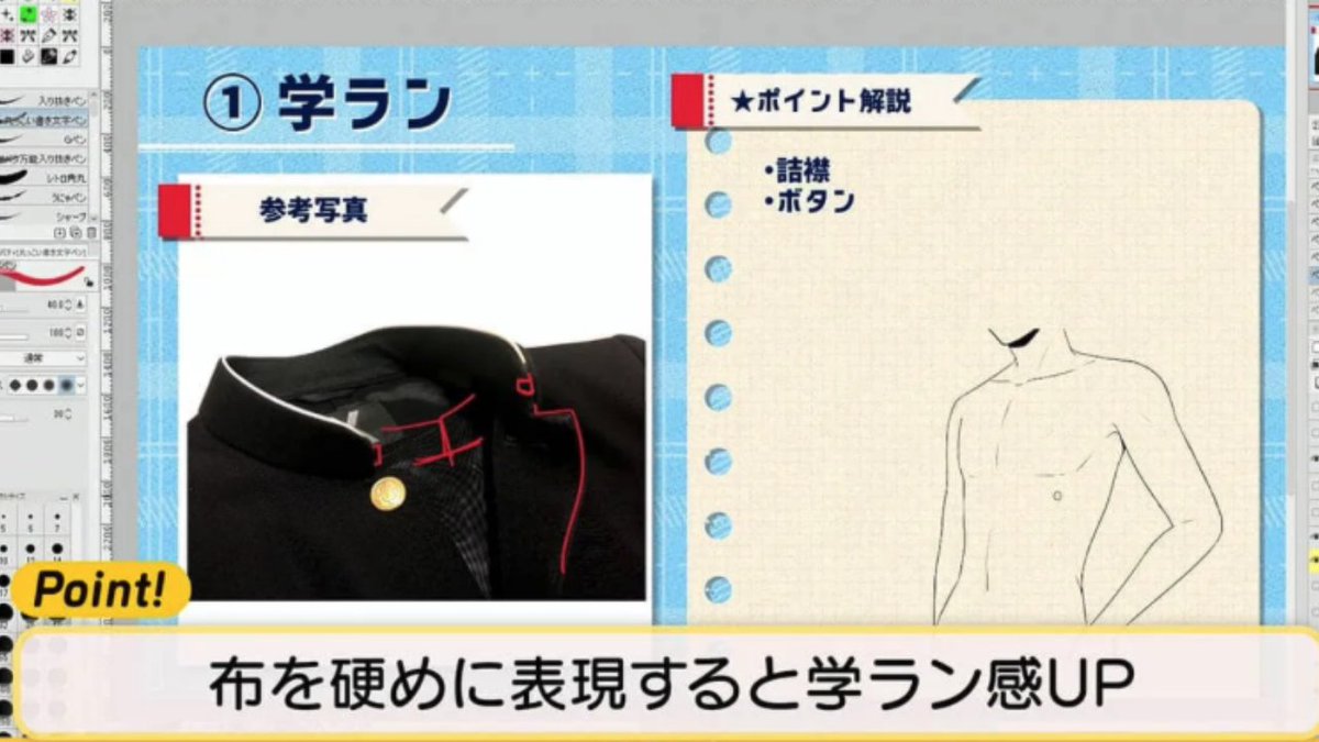 難しい男子制服の「襟と肩」の描き方をまと…未分類2023.04.07 お絵かき講座パルミー難しい男子制服の「襟と肩」の描き方をまとめました👔✨布を硬めに表現すると学ラン感UP⤴️✨ https://t.co/7m0SXUf7gi https://t.co/9EchrAhgOs 引用元