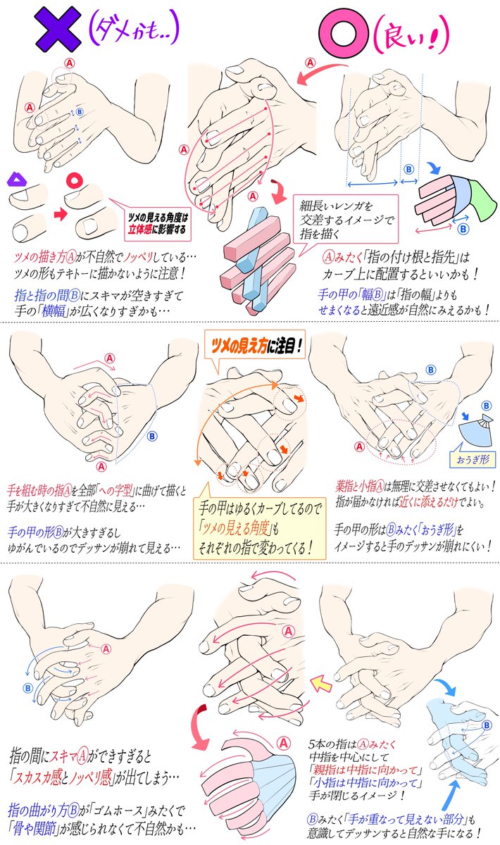 手を組むときのポーズを描くとき図解ポーズ2023.04.10 吉村拓也【イラスト講座】手を組むときのポーズを描くとき図解「ダメかも❌」と「良いかも⭕️」手の練習をしたい人✍️には 吉村拓也のFANBOX講座がおすすめ🔻 https://t.co/UKiQpTPtxdFANBOXには✨全500ページ以上✨の 《人体に関するイラスト図解📝》が 図書館のようにまとめてあります‼️ぜひFANBOXをのぞいでみてね😊✨ https://t.co/J28phTdjiN 引用元