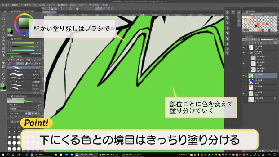 パーツごとに色を塗り分けて下塗りをしてい…