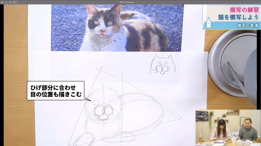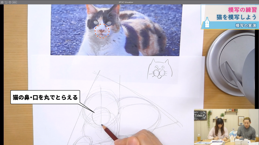 大きく当たりをとった猫の顔を描いていきます(ΦωΦ)