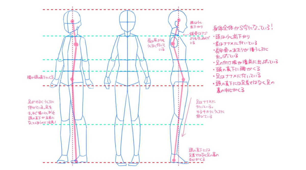 自然な立ち姿を描くポイントをまとめました✍️