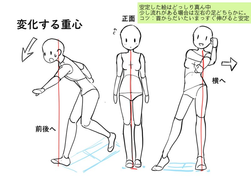 キャラクターの重心をずらすことで不安定さを表現したり躍動感を出すことができます❗️
